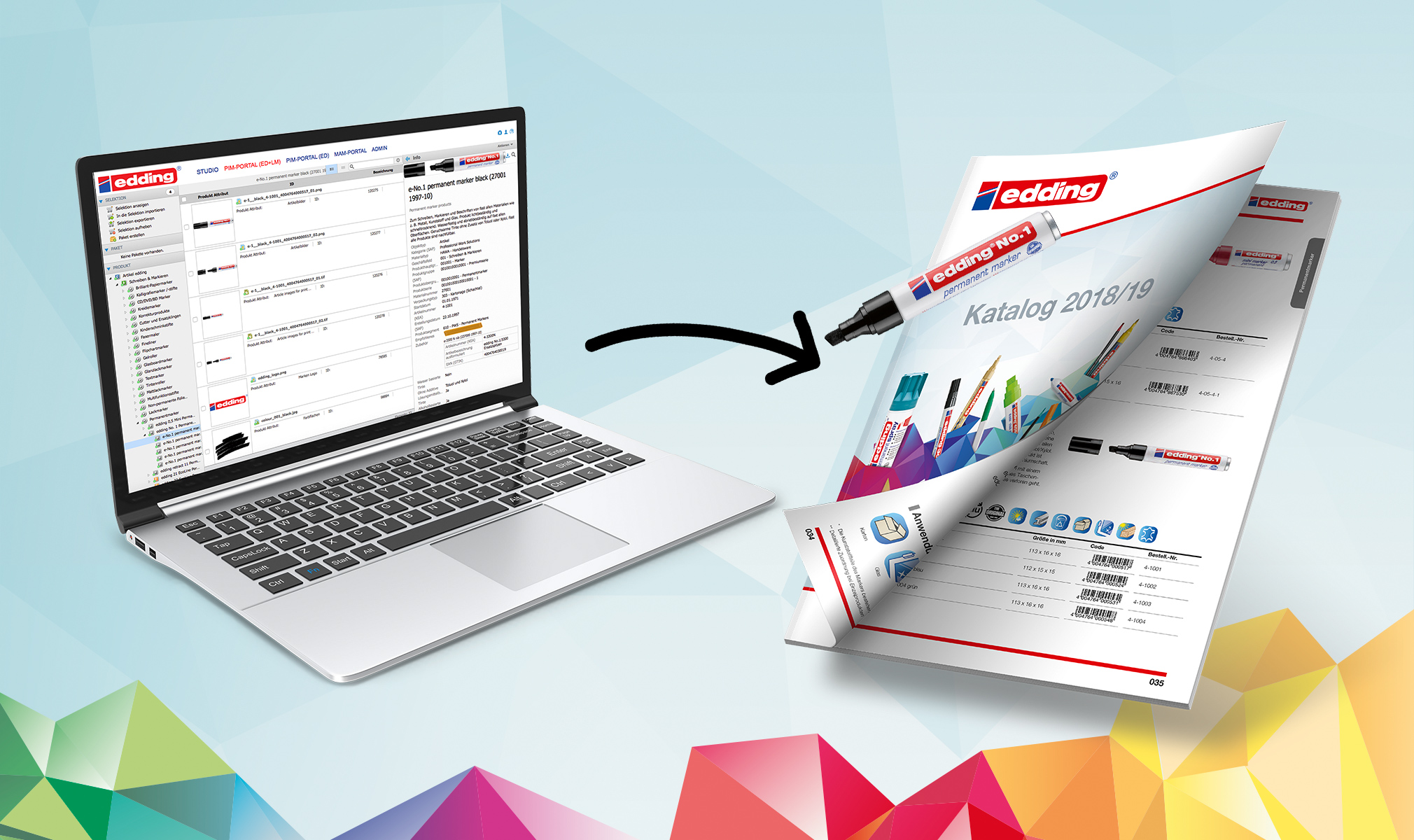 Product Information Management (PIM) hingelegt und die Katalogerstellung für edding quasi